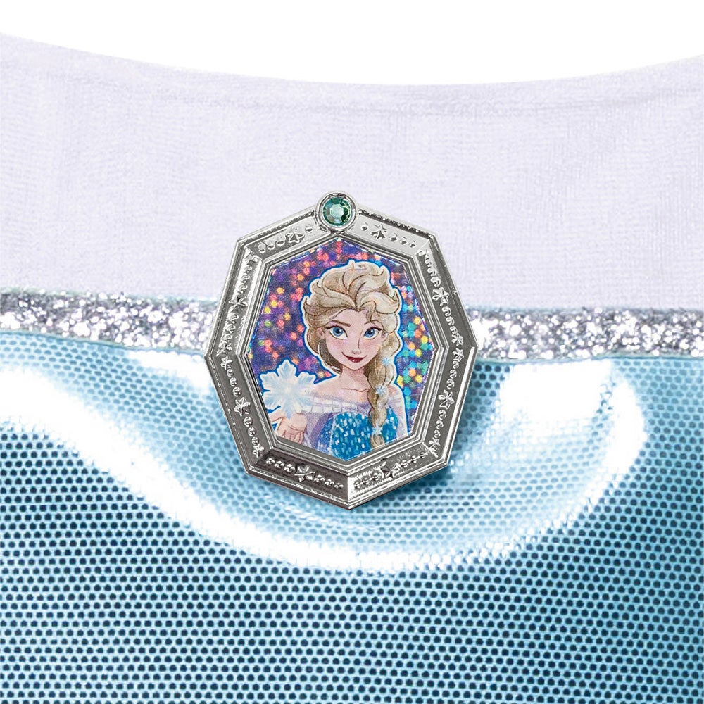 • 胸元にはエルサのイラスト入りのキラキラしたブローチがポイントに!