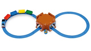 行き先レバーをきりかえると、トーマスが“あっちこっち”に走る楽しいセットです。