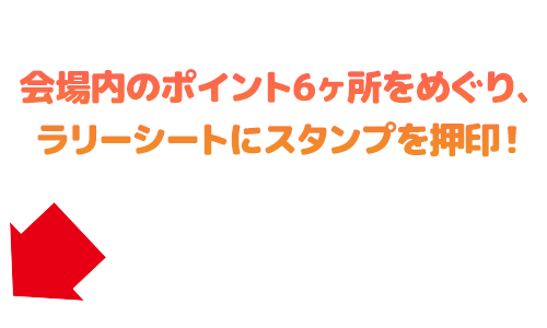 会場内のポイント6ヶ所をめぐり、ラリーシートにスタンプを押印!