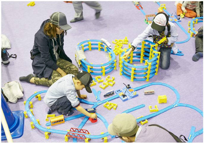 プラレールが置かれた遊び場で、お子様に自由に遊んでいただくアトラクションです。