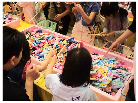釣った絵札のリボンと同じ色のドレスがもらえます。