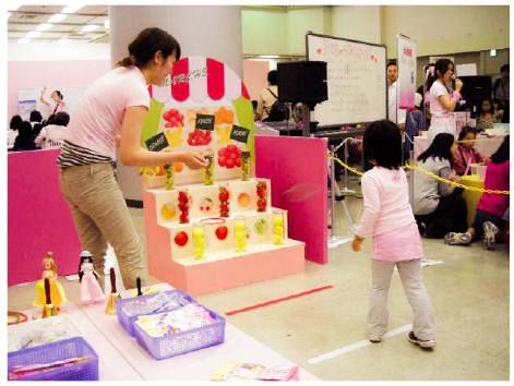 リカちゃんの好きなフルーツめがけて輪を投げ、成功数に応じてアイテムがもらえます。