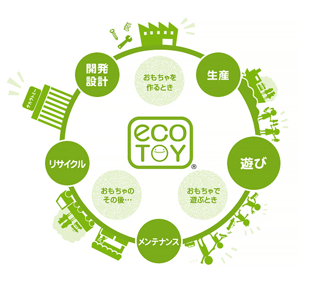 タカラトミーグループでは、おもちゃのライフサイクルの各シーンで考えた環境配慮の自社基準を満たしているおもちゃを「エコトイ 」として認定しています。