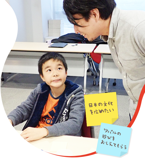 - 言葉を教え合う!お互いにインタビューをして、何が好きなのか知りたい!