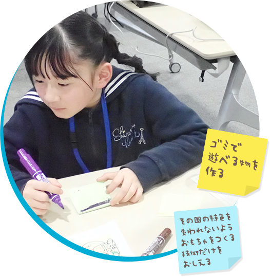 - おもちゃが無い国に、無理やりおもちゃをあげるのは、その国らしさがなくなってしまうかも。技術をおしえるだけだと、その国の特色が失われないと思う!