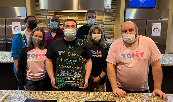 ロナルドマクドナルドハウスの居住者は、地域の病院で病気を治療中のお子さんを持つご家族です。ハウスの居住者のために、昼食や夕食の準備に加え、おやつづくりやその後の片づけも行いました。