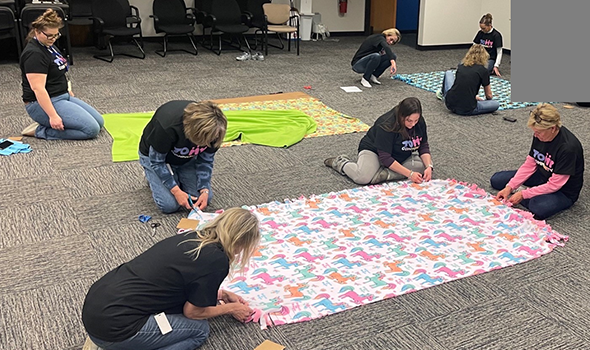 毎晩寝る暖かいベッドや毛布を必要としている子どもたちのために、心地よく眠れる毛布を作り、寄付しました。