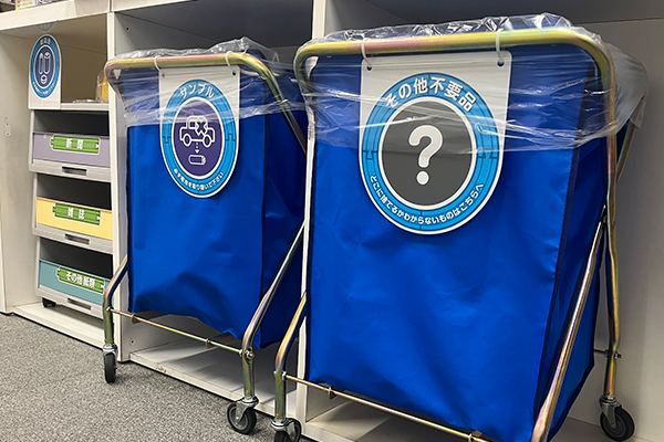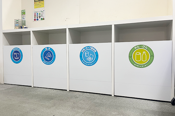 わかりやすいサインを使用することで、社員が分別しやすい環境を整えています。オフィスでも適正な分別をすることで、リサイクルの推進・環境負荷低減への取組を行っています。