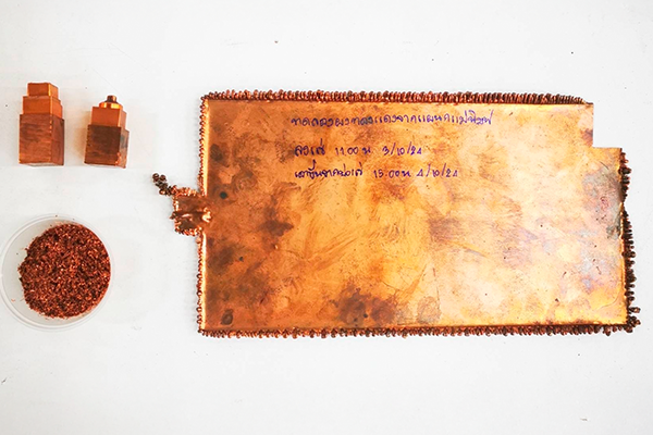 2024年10月に、本来であれば廃棄される「銅」をスプレーマスクへと生まれ変わらせる取り組みをスタートしました。製品部品の成形に必要な金型を作成する為のEDM*マスターから出る「銅」の削りくずを、スプレーマスクに生まれ変わらせ、実際に製品を塗装する際に再利用しています。