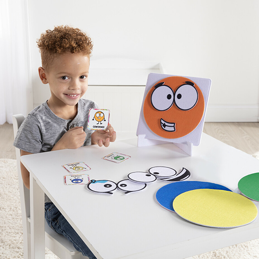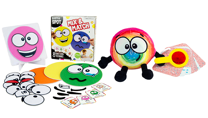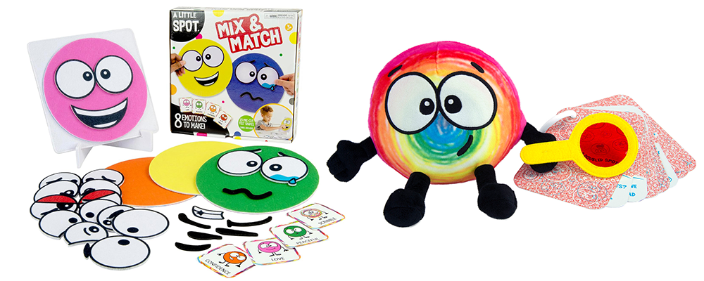 A Little Spotは、涙がこぼれている目や笑っている口や眉毛など、自分の気持ちに近いと思うパーツを選んで、キャラクターの顔を作っていく。この作業を通じて、子どもが自分の気持ちをうまく表現できるようなおもちゃにしました。口の開き方や眉毛の角度など、さまざまな表情を持った顔のパーツを豊富に用意して、子どもが「目はこんな感じ、口はこんな感じ」というふうに、より細かく自分の感情を選べるようにしたのがポイントです。自分の感情を表現するのが苦手な子どももいますし、それが親にとってもコミュニケーションを取る上でフラストレーションになることがあります。このおもちゃを通じて、たくさんの子どもたちが豊かな感情表現を身につけられることを望んでいます。