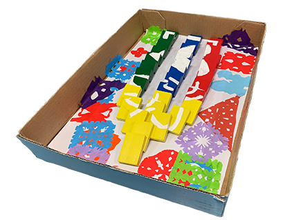 ご家庭にある捨てられる包装材がカラフルな積み上げゲームになりました。