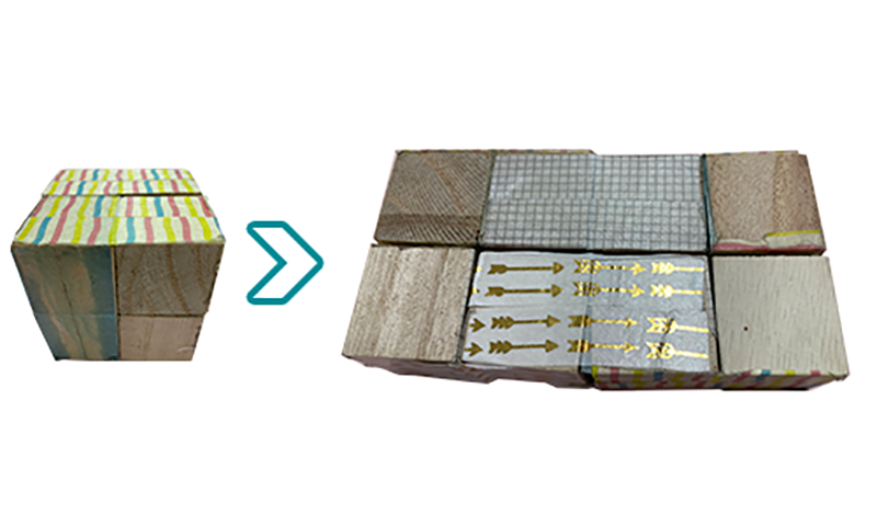 視覚に障害がある人にも、触れることで変わっていく形がわかるおもちゃとなります。