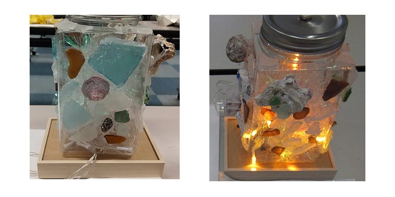 海岸で捨てられたガラスが砂や波で磨かれたシーグラスに関心を持ち、LEDで光るおもちゃを作りました。