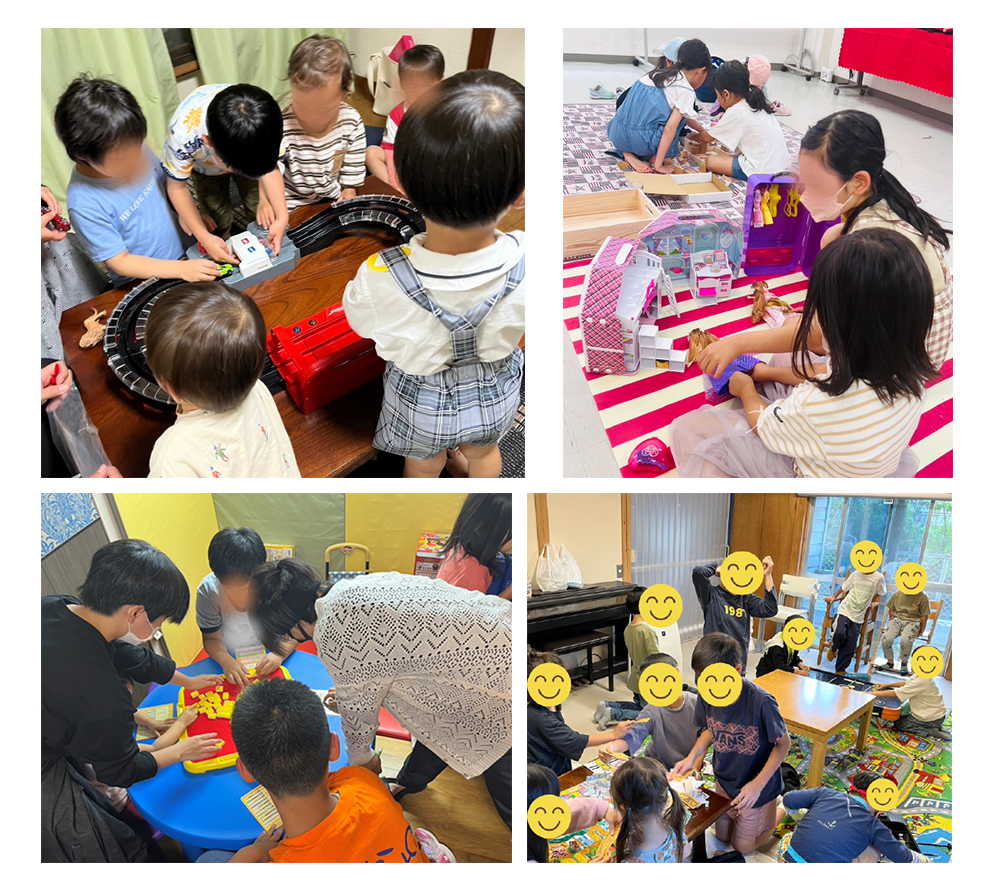 - おもちゃを使って、初めて会った子どもたち同士が一緒にごっこ遊びを楽しむ姿は、見ていても非常に微笑ましく、活動の一環として大変価値のあるものでした。