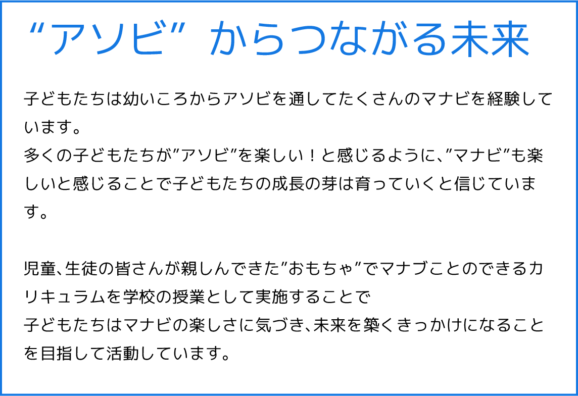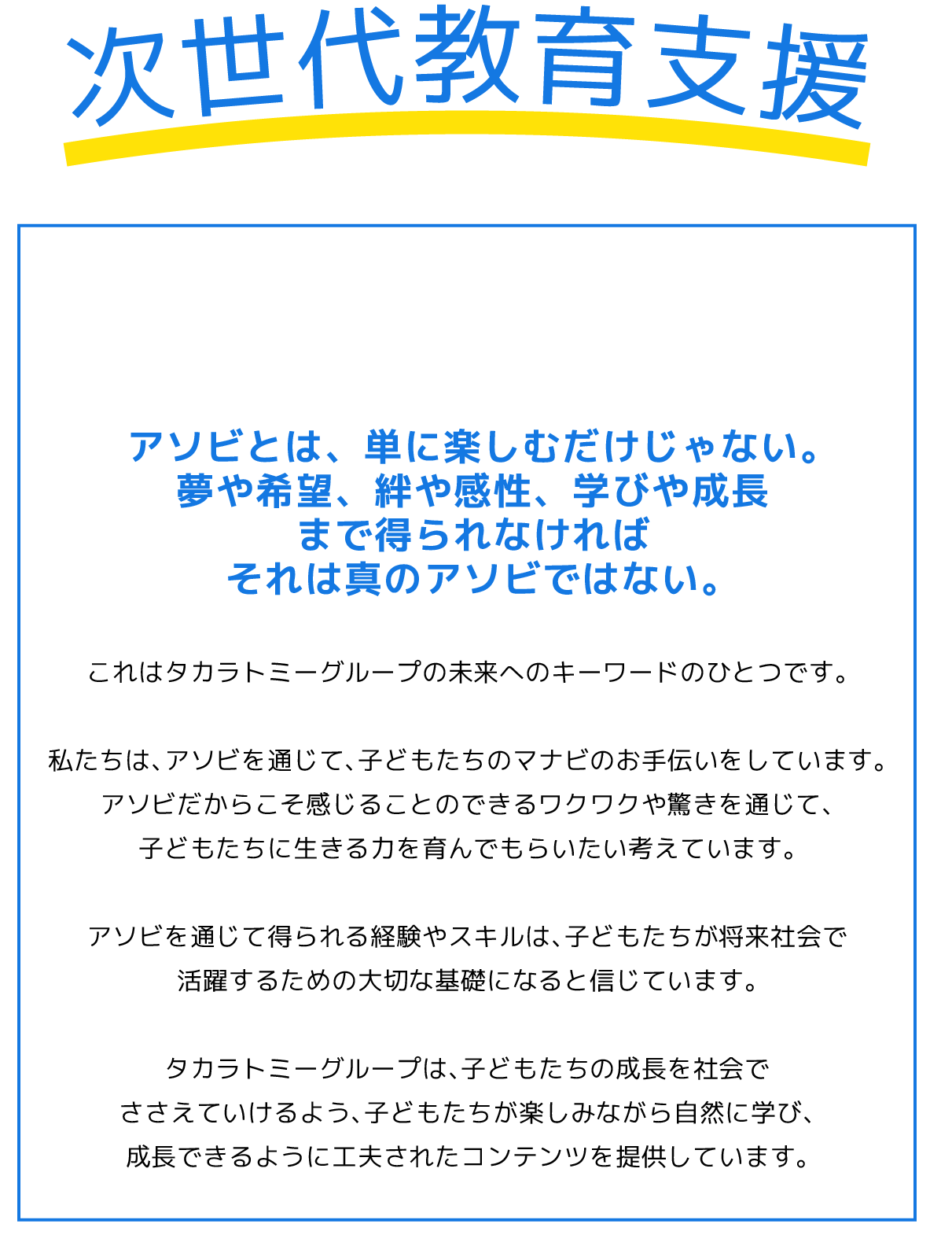 タカラトミーグループは、アソビを通じて子どもたちのマナビを支援し、