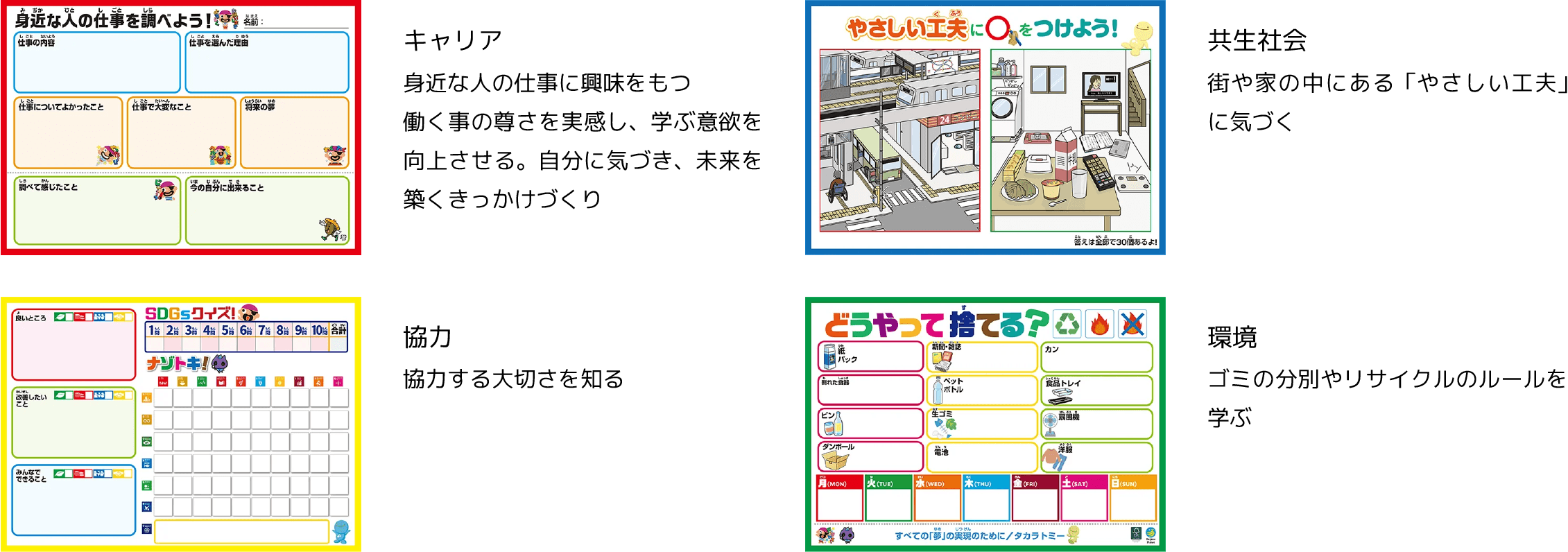 子どもたちの身近なおもちゃをテーマにすることで、より親しみやすく興味を持ってマナブことのできるコンテンツを提供しています。タカラトミーグループの取り組みや他の企業・団体とのコラボレーションを通じてさまざまな業界についてマナブ機会を提供し、将来のキャリアについて考えるきっかけを作ります。