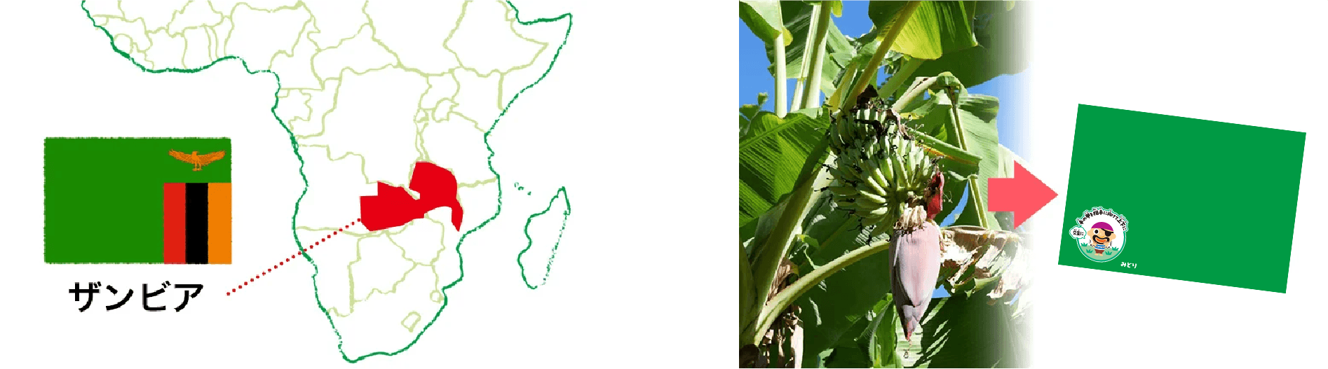 野生動物が自由に暮らしているアフリカの国、ザンビアの村の人達が撮ったバナナの茎の繊維でつくられたバナナペーパーを使っています。