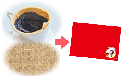 コーヒーを抽出した後に出るコーヒー粉とコーヒー生豆が輸入時に詰められていた麻袋を配合したコーヒー再生紙をUCCグループに提供いただき、使用しています。UCCグループでは、本来は捨てられてしまう可能性もあったものをゴミとせず、資源として有効活用しています。コーヒーをイメージするやさしい色合いと質感を手に取り、地球環境について皆さんとともに考えられることを願い作成された同社の想いに共感し、この紙を子どもたちに広く知ってもらいたいと考えリアクションカラーカードを作りました。