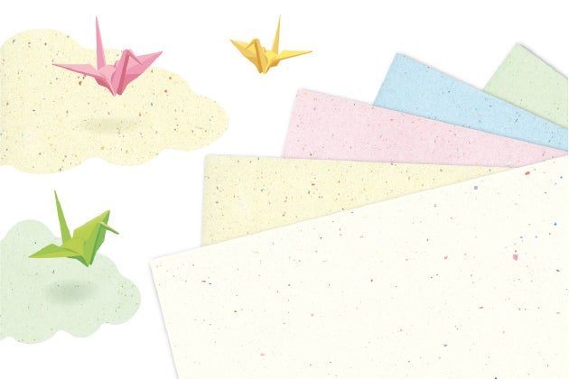 広島平和記念公園等に寄贈された折り鶴を再生した紙をつかっています。