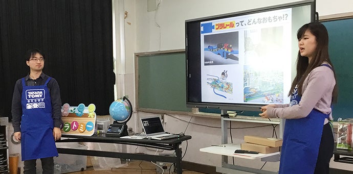 タカラトミーグループ従業員が学校に訪問して授業します。