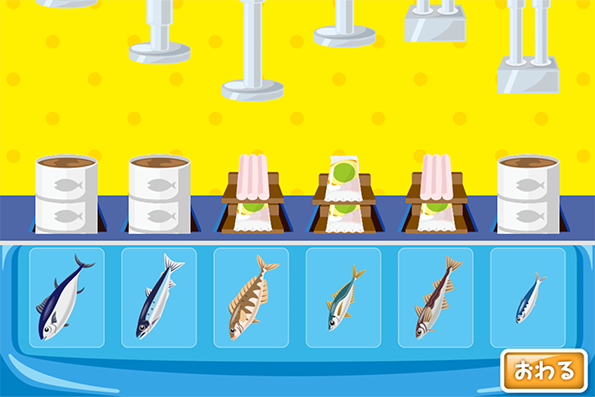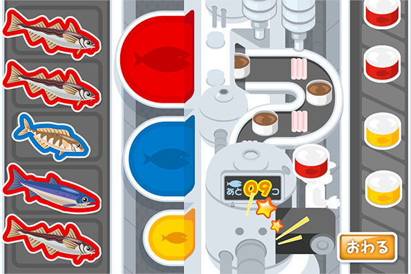 缶詰や水産加工品を作るお仕事を体験できるコンテンツです。