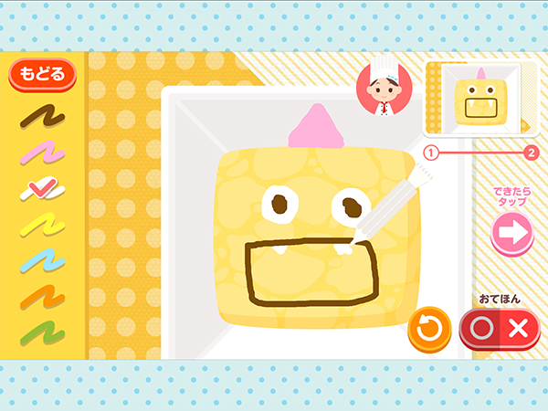 スイーツにクリームやフルーツでデコレーションをしたり、チョコペンでお絵描きをしたり、パティシエ気分でかわいい動物やケーキを作って楽しめます。