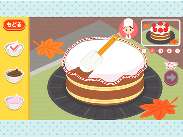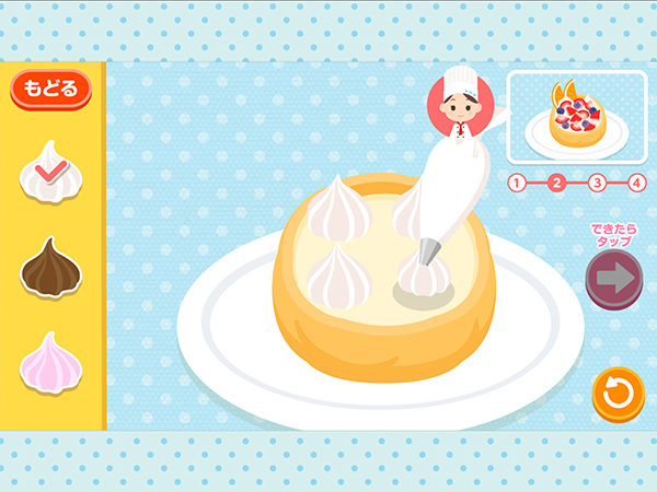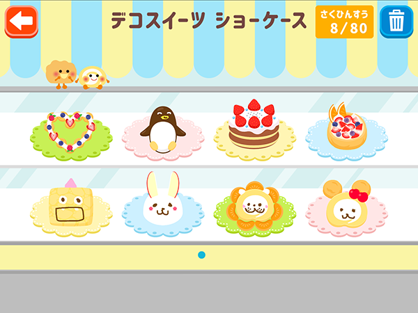 作ったデコスイーツの画像はアプリ内のショーケースで見ることができ、自分だけの洋菓子店を作ることができます。