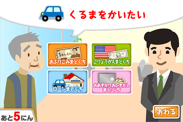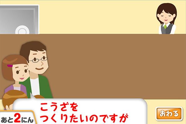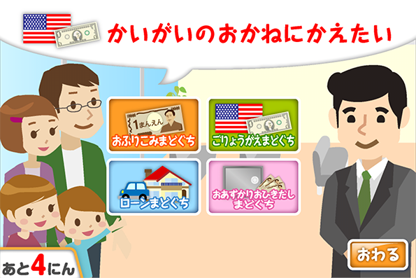 お子さまのお仕事への興味を強めるとともに、銀行を身近に感じていただけるようなコンテンツとなっています。