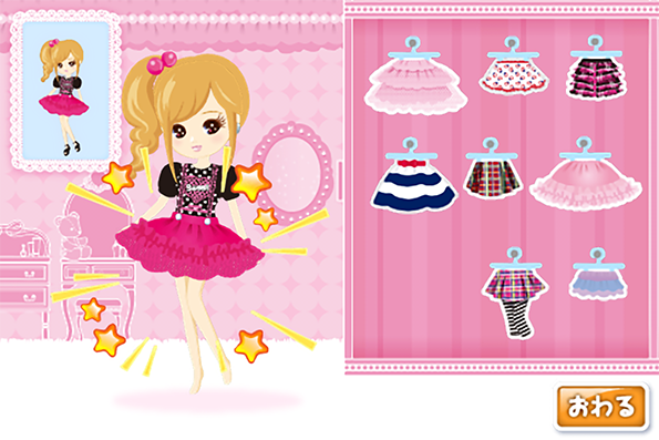 ヘアスタイルやお洋服を選び、テーマに合わせてリカちゃんをコーディネートします。