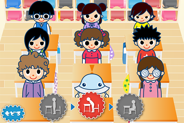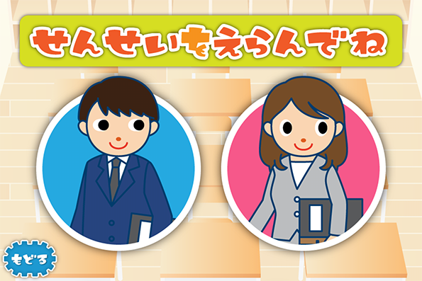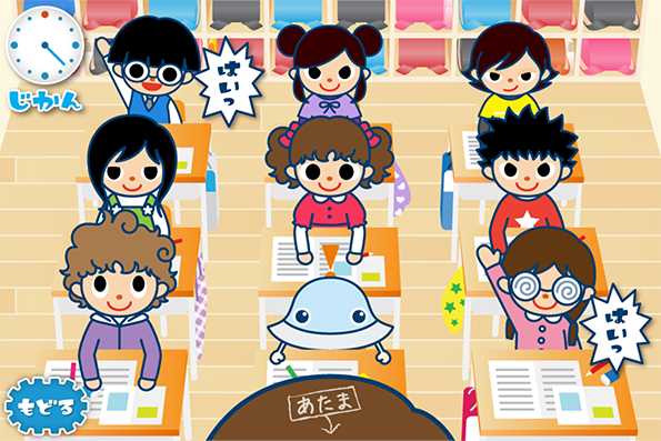 「せんせいになろう!!」は、先生になって、授業で元気に手を挙げる児童をあてる体験ができます。