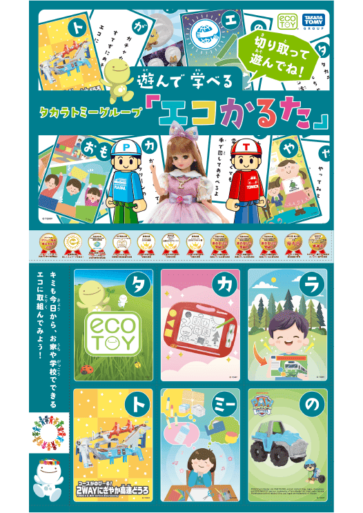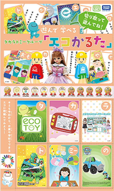 楽しみながら学ぶ、遊びながら気づく、タカラトミーグループのエコ活動レポート「エコかるた」を希望校にお送りしています。