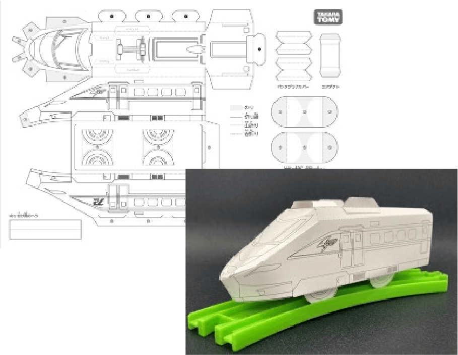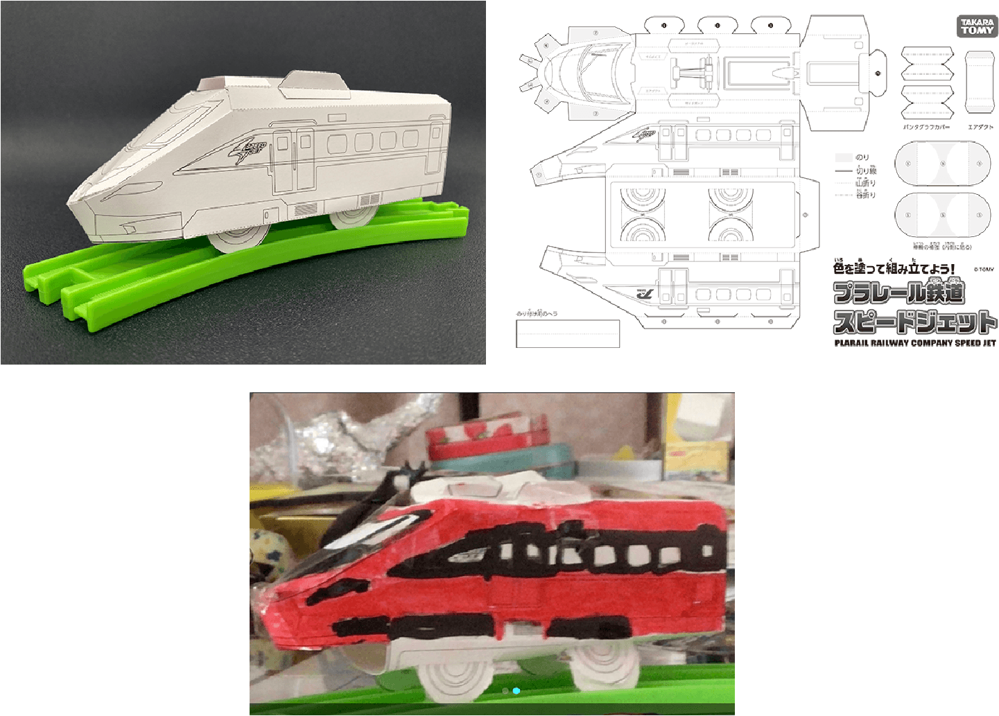 塗り絵ができるプラレールのペーパークラフトを希望校にお送りしています。