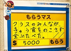 人生ゲームポスターはらうマスには社会課題、もらうマスにはタカラトミーグループの従業員や会社が取り組んでいるSDGsの活動がかかれているSDGs 人生ゲームのポスターを希望校にお送りしています。
