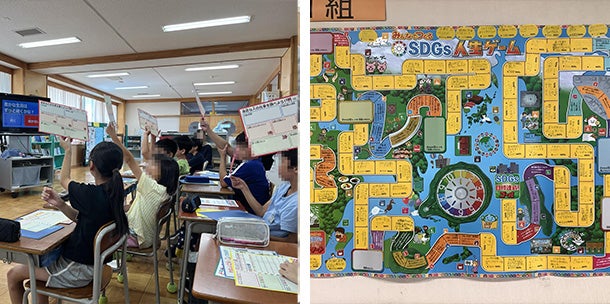 関わり合いながら、SDGsについて楽しく学んでおり、「SDGs人生ゲーム」という教材は、大変魅力にあふれたものであると思います。