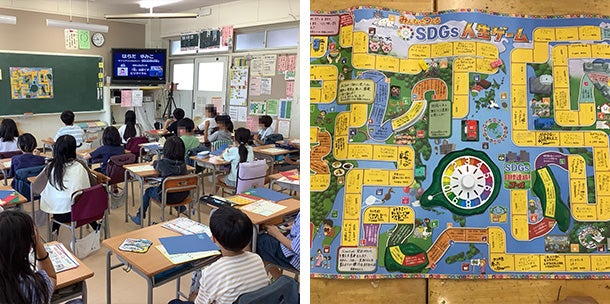 おもちゃという児童にとって身近な物を題材に、SDGsについて楽しく学ぶことができました。人生ゲームのマス作りでも主体的に活動し、学んだことを活用しながら目標達成のために自分たちは何ができるかを考えることができました。