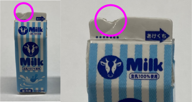 牛乳は他の紙パック飲料と区別するために、パックの上部に切欠きがついています。