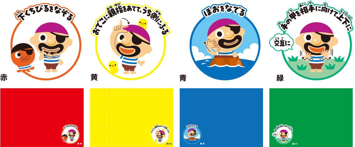 様々なコミュニケーション手段があることを知り、共生社会の実現にむけた活動につながることを願い次世代教育で使用しているリアクションカラーカードには、黒ひげくんが色を手話で表現しているイラストを表示しています。