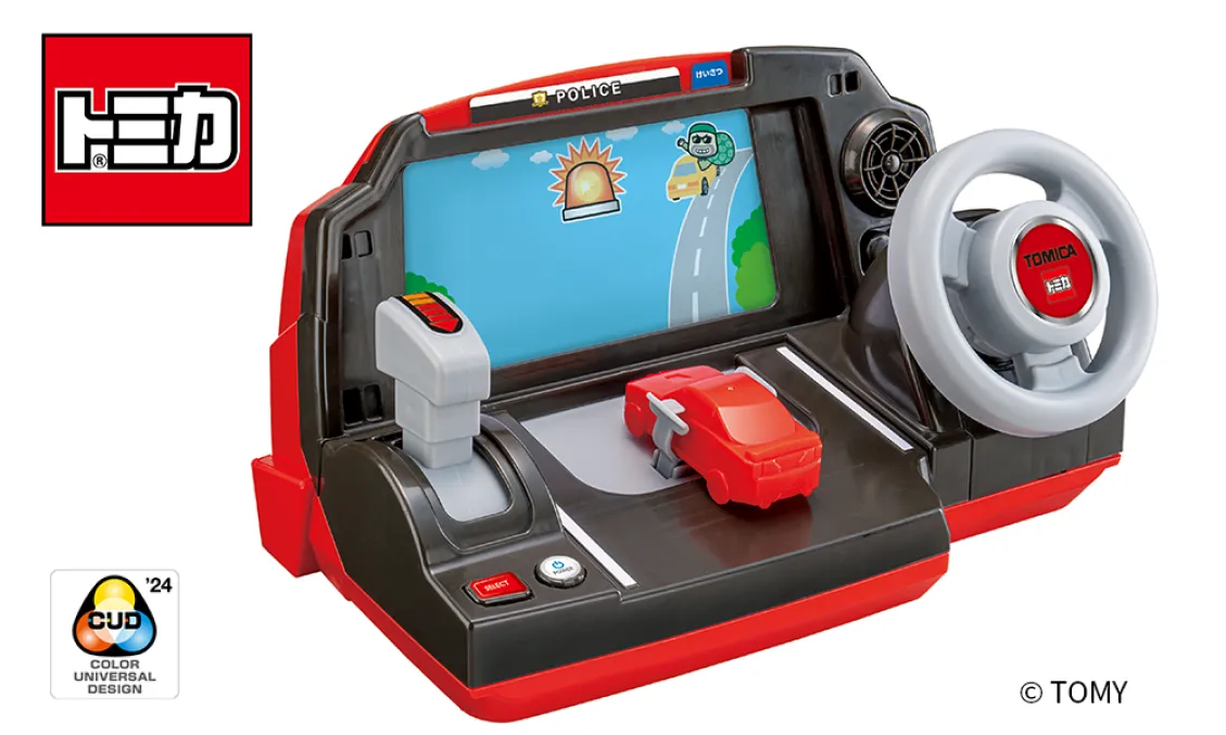 - この「トミカを運転1ハンドルドライバー」は色覚の個人差を問わず、より多くの人に見やすいカラーユニバーサルデザインに配慮して作られていると、NPO法人カラーユニバーサルデザイン機構(※タカラトミー以外に移動します)により認証されています。
