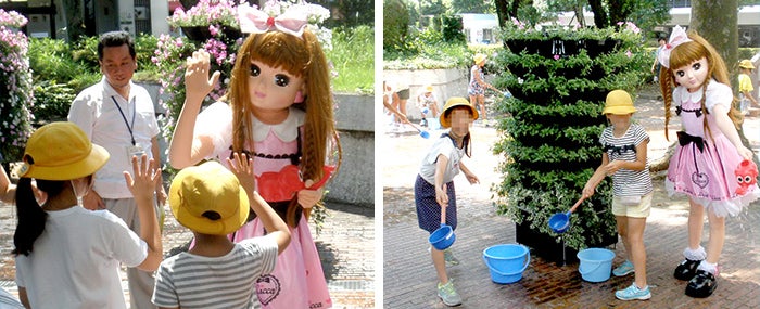 タカラトミー本社前の桜通りでは、子どもたちにエコを伝える地域貢献の一環として