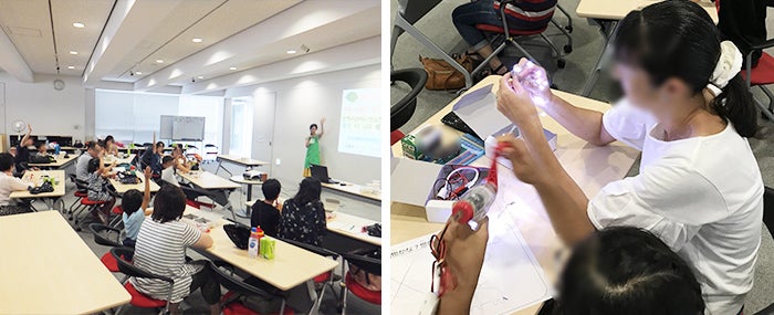 発電機を使った実験でエコなおもちゃの工夫について学ぶ体験講座や、