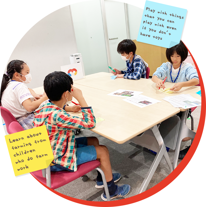 Fifteen elementary school participants (grade 3 to 6) discussed about the topics with TOMY staff and CANVAS members, and expressed many opinions.