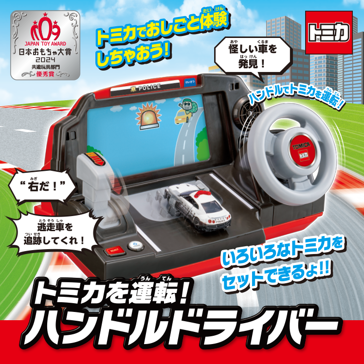 This accessible-design toy enables children with visual disabilities to experience simulated driving and play a wide variety of games, taking direction information from voice cues and moving a steering wheel in response to sound effects, all in an authentic sound environment. Let’s Drive TOMICA! Handle Driver is also certified under color universal design (CUD), which guarantees support for color-vision variation.