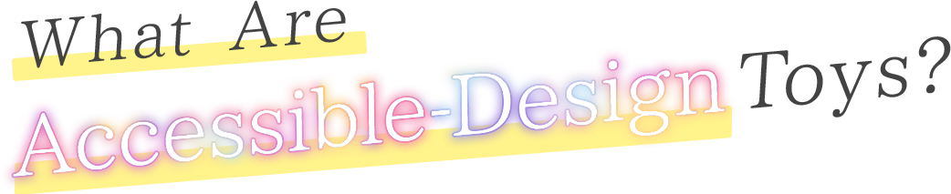 Accessible-design toys are not toys just for children with disabilities. Rather, they are general-market products that children can enjoy regardless of whether they have any visual or hearing disabilities. For example, these toys may use different textures for different colors to enable children with visual disabilities to distinguish them, or have sounds and voices of the toys which are also expressed through their movement and animation for children with hearing disabilities to enjoy. Our aim is to enable as many children as possible to have fun playing with their friends regardless of their disabilities.