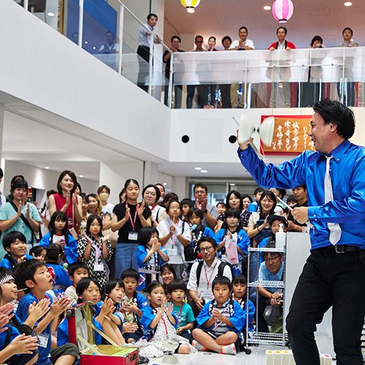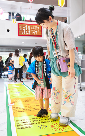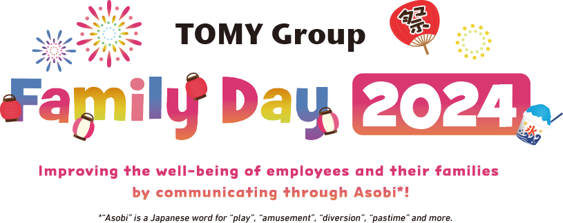The theme for this year’s Family Day, which marks TOMY’s 100th anniversary, was “100th Anniversary Grand Appreciation Festival!!” To show our special appreciation to the employees who have supported the TOMY Group, as well as the families who support them, we prepared a program that allowed participants to experience the Group’s many types of Asobi in an office decorated like a festival!