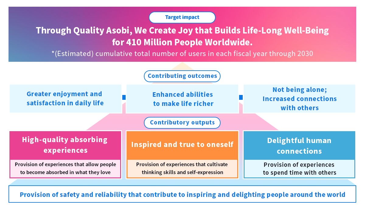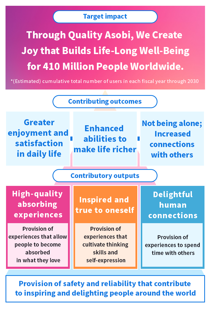 Building on these outcomes, we will aim to achieve the impact, “Through Quality Asobi, We Create Joy that Builds Life-Long Well-Being for 410 Million People Worldwide.”