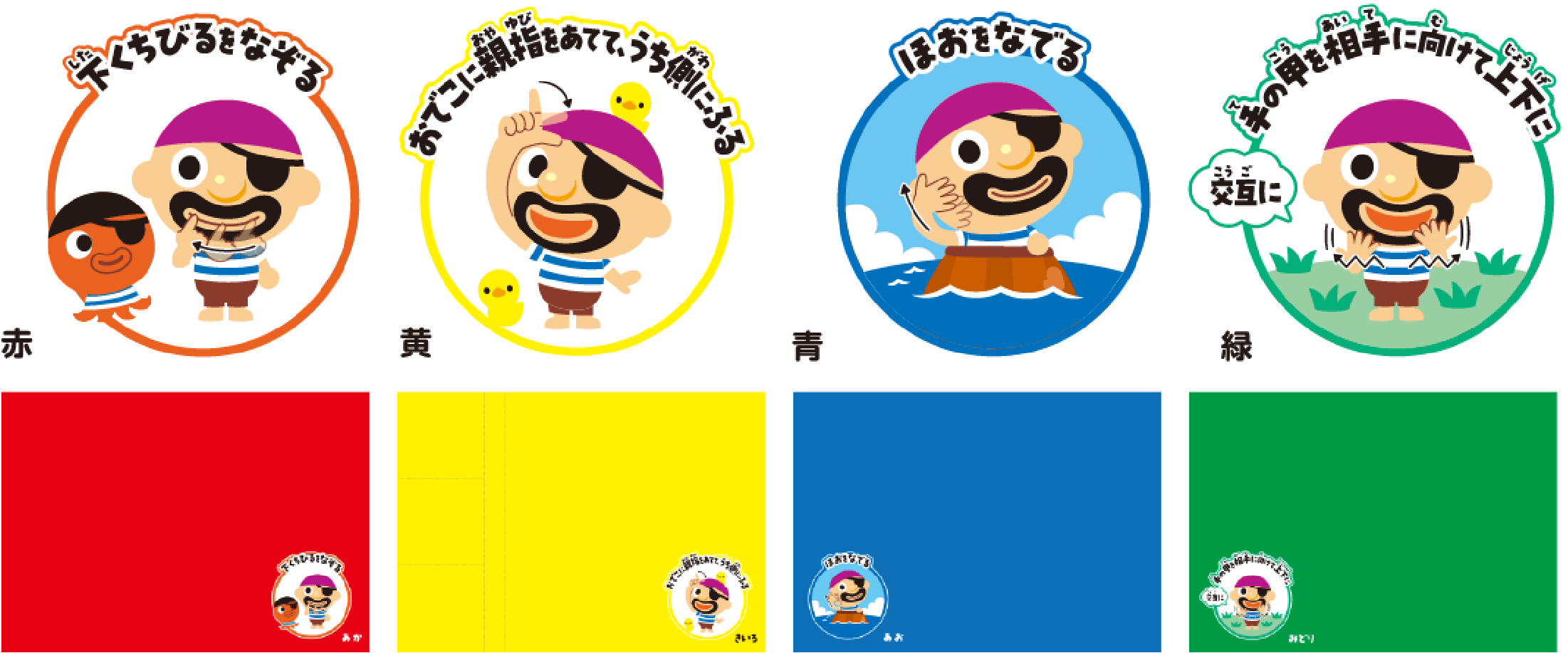 Wanting to know that there are various means of communication and to lead to activities toward the realization of an inclusive society, the reaction color cards used in next-generation education feature illustrations of Pop-up Pirate expressing colors in sign language.
