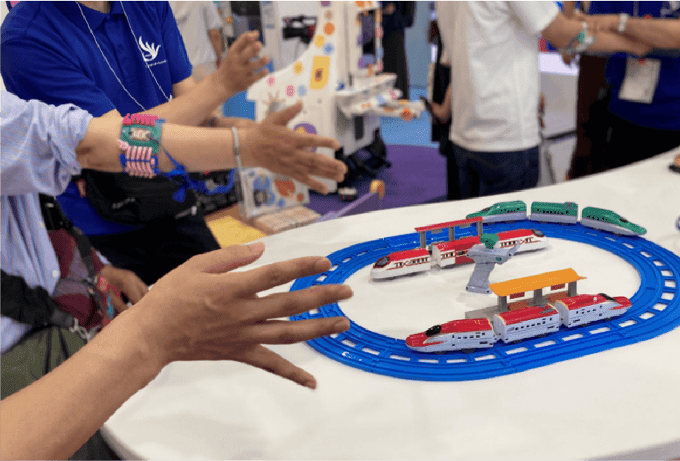 The National Rehabilitation Center for Persons with Disabilities utilizes a system (*) that allows for remote control of PLARAIL based on the same principle as myoelectric prostheses, as a way for children with congenital upper limb deficiency to learn how to move a prosthetic while having fun. They are working toward the popularization of pediatric myoelectric prostheses.