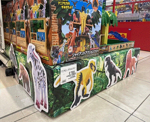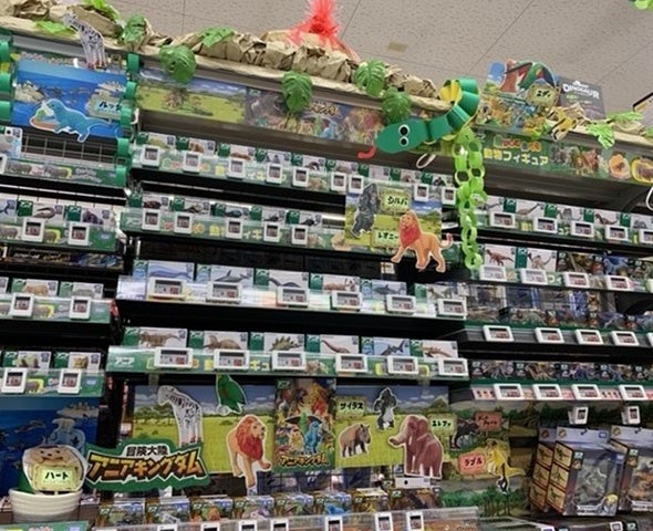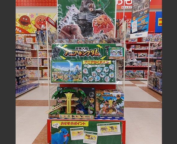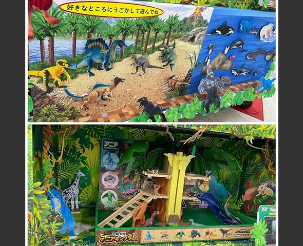 火山が目を引くアニアコーナーには遊びがいっぱい!解説POPでアニア達のことをたくさん知って、大きなアニアPOPで自由に楽しんじゃおう!!緑に囲まれたサンプルコーナーで遊べば、ジャングル気分で最高潮!!