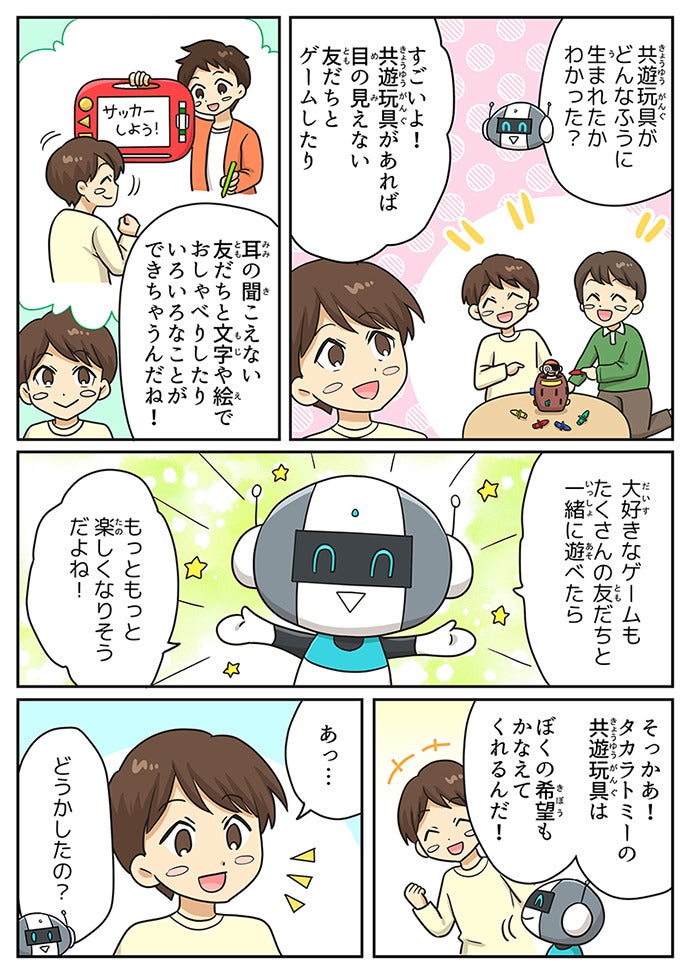 However, we believe we need to extend our considerations to allow even more people to enjoy our toys, in addition to the children with visual or hearing disabilities currently supported by accessible-design toys.