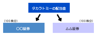 (例)タカラトミー200株が○○証券に100株、△△証券に100株記録されている場合